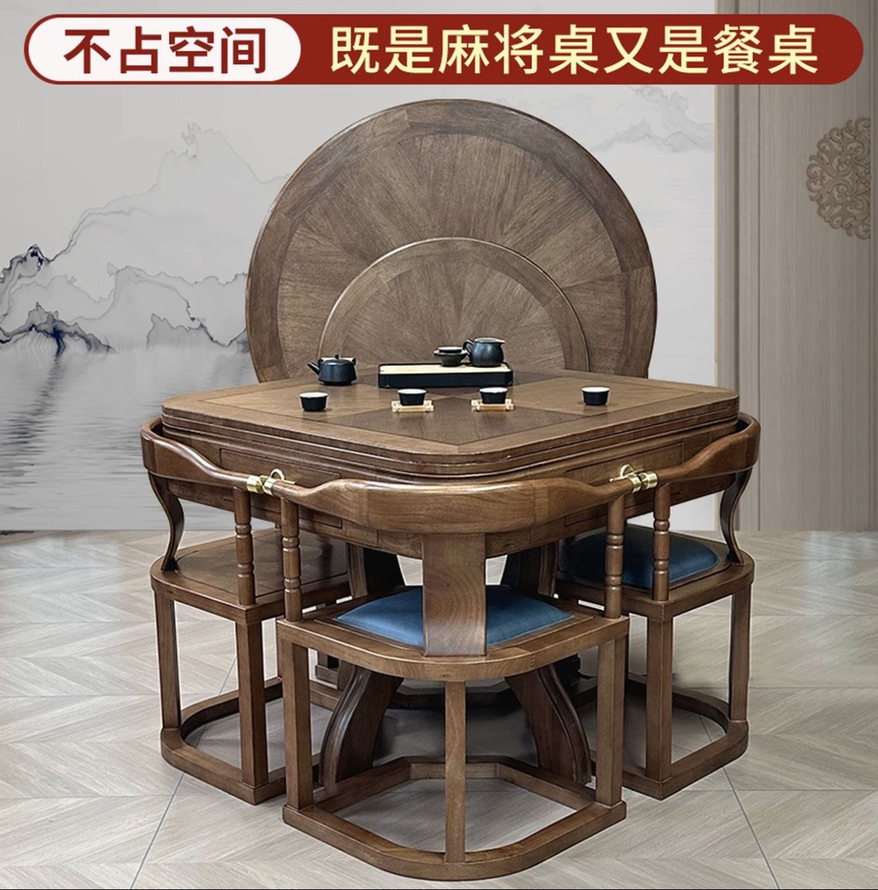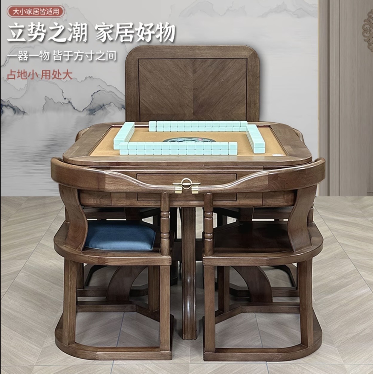 新国风麻将机+四把椅子+三张桌面-八件套发货